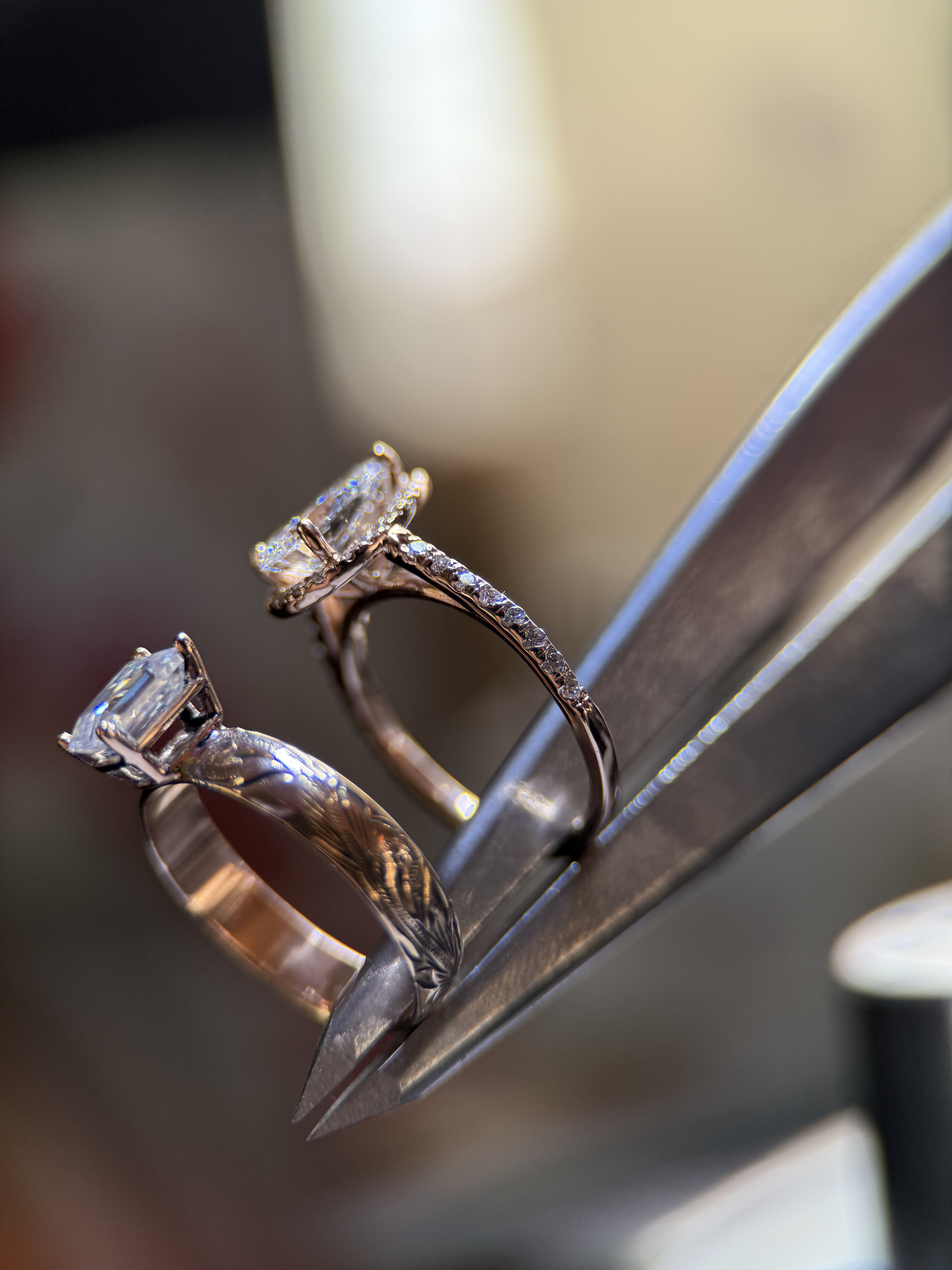 ORIGINAL CUSHION CUT TWO RING SET.
